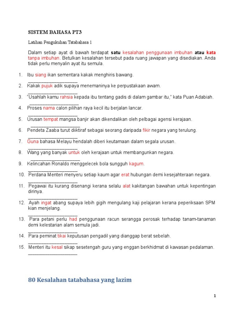 Latihan Sistem Bahasa Pt3 Soalan Pdf